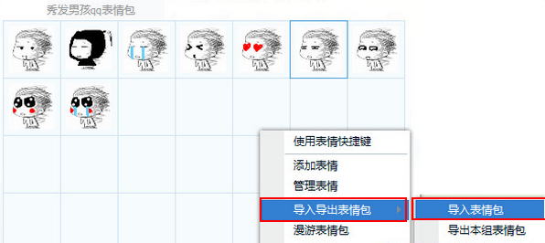 方法二:打开qq表情设置,“导入导出表情包”——“导入表情包”即可使用秀发男孩qq表情包了。