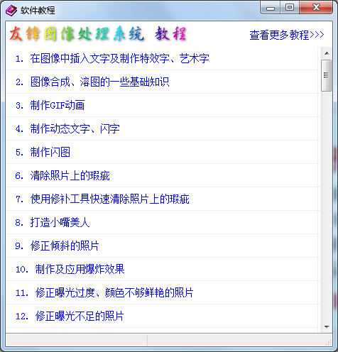 友锋图像处理系统官方网站推出了很多实例教程,您随时可以去阅读这些教程,以更好的学习使用《友锋图像处理系统》: