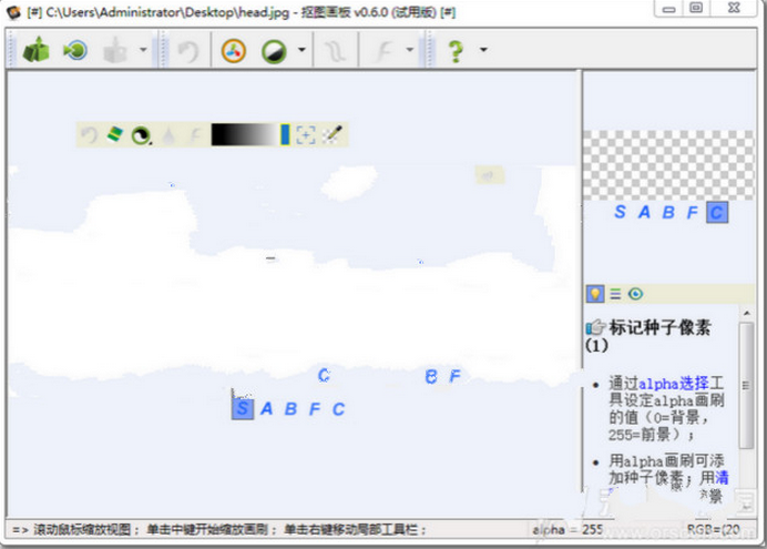 1.使用时仅标记了前景,或仅标记了背景,抠图画板都不会开始工作;