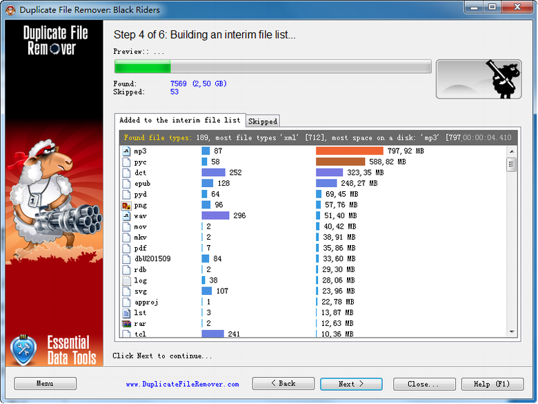 重复的文件可以被删除,硬链接,移动或复制。重复的文件列表可以排序,导出为HTML报告,并采取行动。