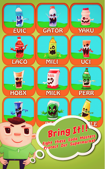 最受欢迎的超市受到了苏打怪的入侵啦~大家快来帮助打工少年、阳光大学生、pop潮男组合来对抗这些怪物吧。玩家只需要用一笔画的方式将相同颜色的方块连接在一起就可以消除他们啦。还可以购买你喜欢的道具来提高你的战斗力哦。