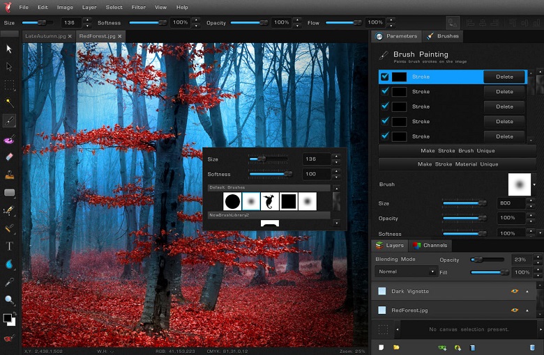 Bloom是第一个编辑,让真正的非破坏性编辑。你申请的每个过滤器,效果,笔触或矢量编辑被单独存放,并没有什么烤这可以让你回来什么你过去做过调整了它 - 没有重做所有的后续工作。即使笔触编辑所绘制他们了!