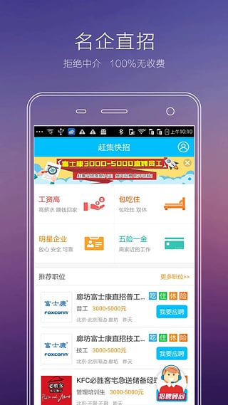 1、在赶集快招发布职位的企业均与赶集快招签署合作协议,目前合作的有富士康、联想、必胜客等。