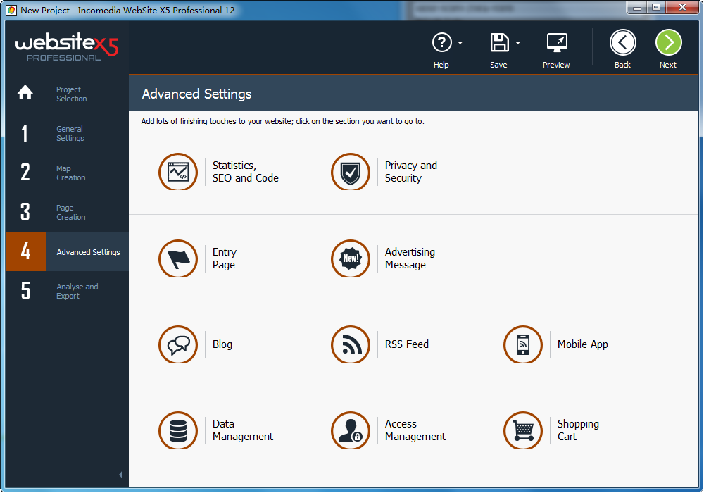 WebSite X5 Professional 它是一款可视化网页设计制作工具,它最大的特点就是快速、简便、专业。使用WebSite X5无需专业的编程技能,你只需要一个鼠标并通过鼠标的点击选择就能随时预览其效果。WebSite X5拥有你需要的一切需要从而创建更具吸引力和专业的网站,然而就是这么简单的鼠标点击。