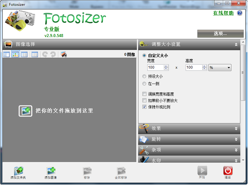 Fotosizer是一个免费的一批照片/图像缩放工具。它可以让你调整数百张照片,在几分钟之内就在一个快速简便的方法。您可以收缩JPEG图像文件以及其他支持的格式,并且大幅降低网络传输时间,使您能够快速,轻松地准备您的图片集将在网页上公布。