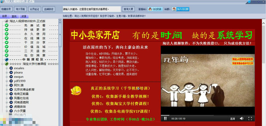正式版需要注册才能使用,除淘宝大学以外,还能观看其它电商VIP课程,如慕斯城、诺思星、狐妖等!课程实时更新!