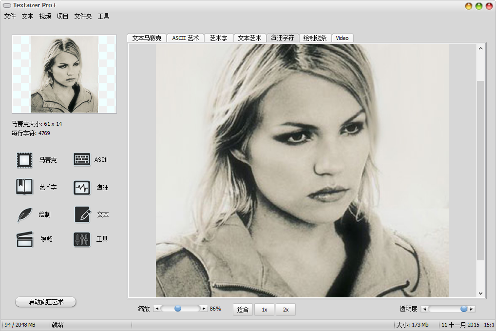 Textaizer Pro创造的一切创意形状的文字艺术。它还包括广泛的可能性,以创造出真正的ASCII艺术。 以及更多。文本马赛克是从数百个字符或数千内置的图片。每个字符需要被替换由该字符的区域的颜色,并从远处看时的原始源图像被识别。