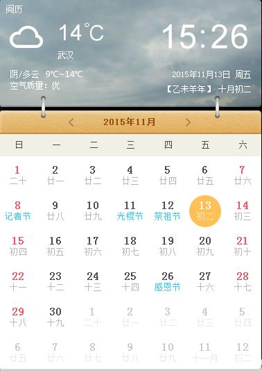 1.新增日历功能,支持农历和节假日