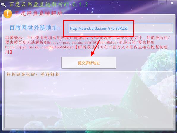 1、将百度网盘外链复制到地址栏里,点击提交解析地址;