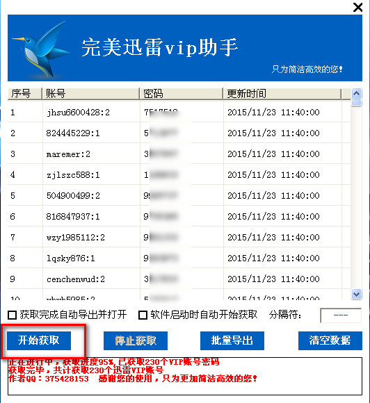 迅雷会员账号分享器可以免费提供大量真实的迅雷会员账号,有些迅雷会员账号发布后后在一定的时间失效,我们也不必担心,因为VIP迅雷账号资源广,一般那些迅雷会员账号分享器会每隔一段时间更新一批,所以尽可放心无忧