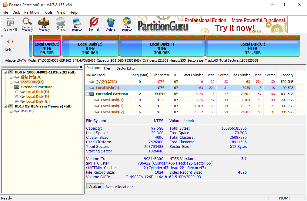 分区专家 PartitionGuru Free 64位最佳自由分区管理器提供了一个全功能于一身的解决方案进行数据恢复,分区管理和Windows备份和恢复。恢复被删除,格式化,丢失的硬盘驱动器,可移动驱动器,RAID,虚拟磁盘等文件和分区。