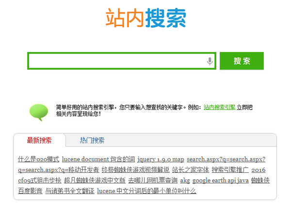 搜易站内搜索引擎是一款面向互联网网站的站内搜索解决方案,性能文档,给用户更好的搜索体验。其针对网站使用数据库搜索性能差,体验差等问题,将搜索引擎技术应用于站内搜索;本系统具备中文分词,智能摘要,关键词高亮等技术,可与数据库无缝集成,目前支持MS SQL 2000/2005,My SQL数据库。软件基于B/S架构技术,前后端设计精美,操作体验佳。