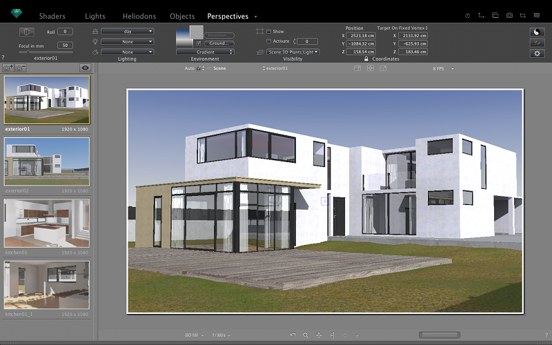 Artlantis Studio 是最快的单机3D渲染和动画应用软件,特别为建筑师和设计师而设计。它是光能传递或全球照明的领导者。Artlantis能够快速而简单地创建出理想的高分辨率3D透视图、QuickTime VR全景、QuickTime VR对象和动画。