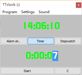 TTclock提供两种显示模式:纯时钟显示和控制面板。在时钟显示模式下的背景可以是完全透明的(只看得见鼠标悬停),或为半不透明的矩形(参见设置)永久可见。