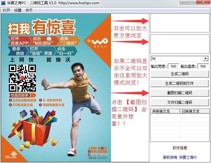 华夏之海二维码工具是一款绿色小巧、操作简单的电脑二维码扫描软件,这款软件集二维码生成、扫描等功能于一体,不仅可以帮助用户生成二维码,还能为你一键扫码,无需摄像头,轻轻松松扫描网页上的二维码,绝对是最简单最好用的电脑二维码扫描软件。