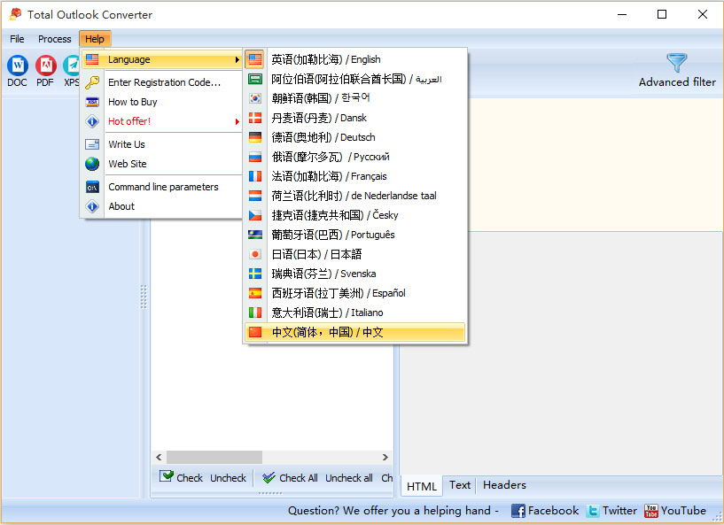 Outlook转换器是最可靠的,选择填充程序,让您转换的Outlook电子邮件,DOC,PDF,HTML,XHTML,TXT,TIFF,JPEG和EML批量。