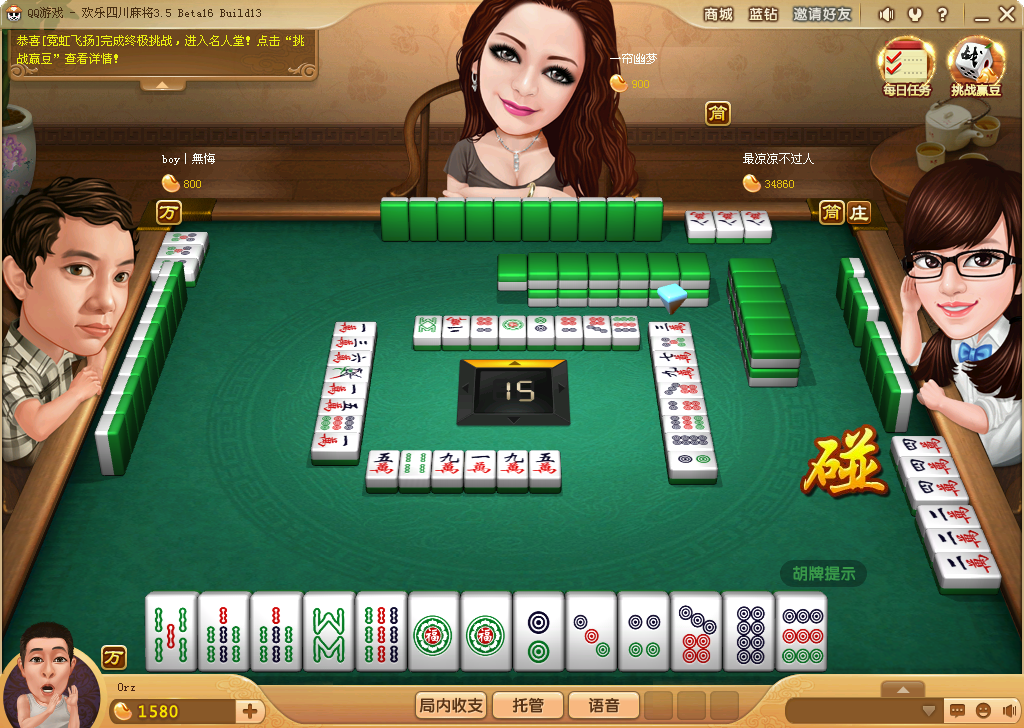 窍门就是 胡牌不要胡小的,比如另外3家都打的是万,你胡2 5 8万,外面一张 2 5 8万都没出来,这个时候你可以胡,而且胡的很多。又比如,手上都是对子的话,你不要碰,如果你运气好的话,来个对对胡,胡的也很大。普通麻将只能胡一次。这个可以胡很多次,直到牌摸光为止。还有就是不要跟豆子少的人玩,你会赢得很少。