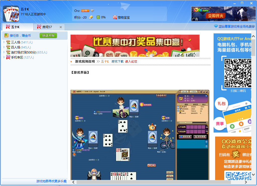 五十K游戏据考是起源于河北地区的牌类游戏,流行于全国各地。坐位相对的玩家相配合,拿更多的分数和争取先将自己手中的牌打完游戏即结束,然后进行分数计算。分数和多一方胜利。