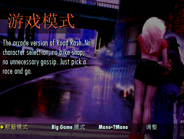 3、比赛进行期间,按 V 键可查看游戏版本,按 F10 为切换/显示/隐藏摩托车的仪表面板;小键盘的“+ -”键为改变游戏背景的贴图颜色。