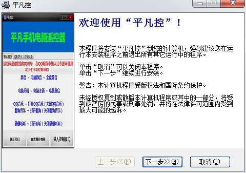平凡控是一款简单好用的手机电脑遥控器软件,它可以利用手机QQ修改昵称口令来进行电脑的控制,手机随时随地、安全快捷地远程控制家中或办公室的PC电脑。