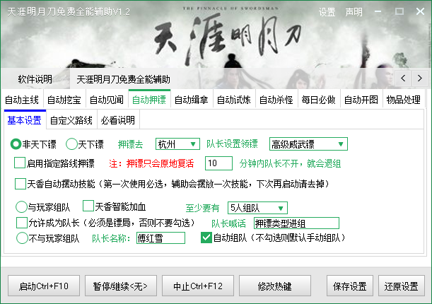 4、自动押镖,支持自动组队,天香智能加血,可自定义路线,无任何卡点。