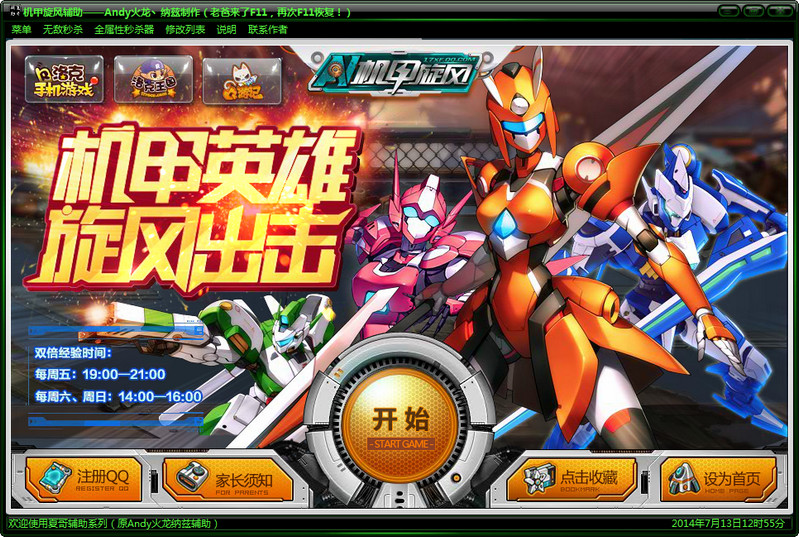 夏哥机甲旋风辅助是一款2016年最新的机甲旋风辅助,这款辅助为玩家提供丰富的辅助修改功能,比如无敌秒杀,全属性秒杀器,人物加速,怪物加速,无限暴击,攻击折叠,人物不倒,无限蓄力,无限miss等,喜欢玩机甲旋风的朋友快来免费下载吧!