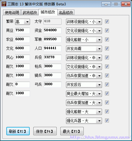 在经过了三国志12的低谷之后,光荣公司终于推出了最新的三国志13。相信很多三国志玩家都已经开始玩三国志13了,那么小编今天就为大家带来几款三国志13修改器和补丁工具,这些工具可以帮助玩家进行城池数据和武将进行