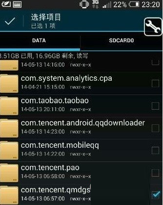 1、打开re管理器 回到根目录 选择data中的data文件夹 然后找到目标文件夹打开