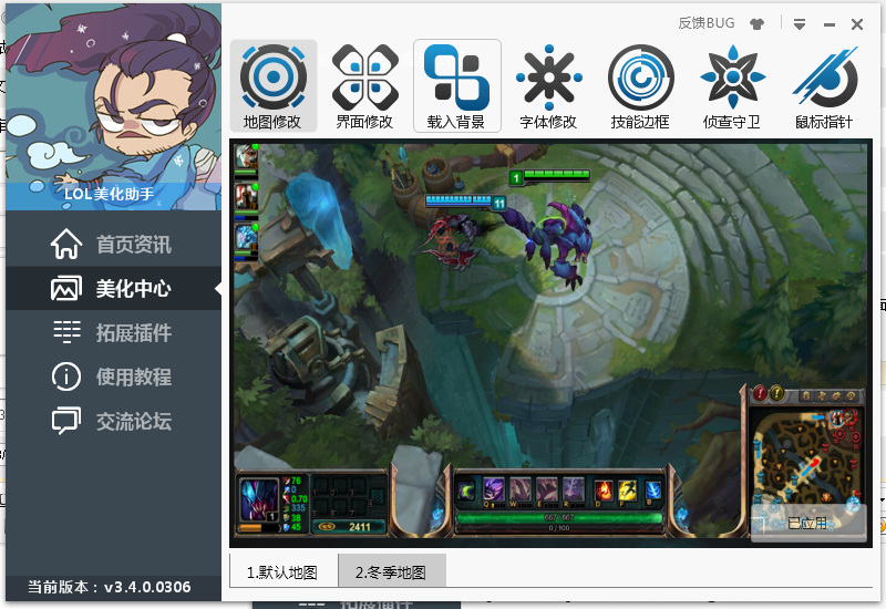 LOL美化助手完全免费使用,支持修改UI界面、字体央视、眼卫皮肤、施法纹理、小兵皮肤等众多美化功能,还支持LOL地图修改,并能拥有转换正式服和体验服、战绩查询等实用小工具。