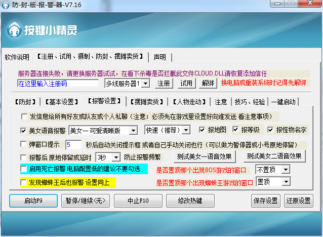 12、辅助主要的功能是2个点来回切换,当你定的点BOSS出现后 辅助就会在第一时间里语音报警