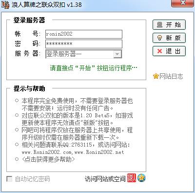 浪人算牌之联众双扣是由浪人算牌器官方推出的专门针对双扣游戏的算牌器,这款软件拥有记牌、算牌功能,浪人算牌程序内没有广告,无需安装,解压缩即可使用;安全软件的防火墙设置要允许,否则无法登录。欢迎免费下载使用!