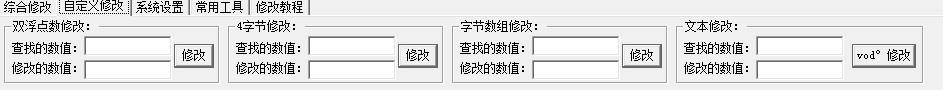 双浮点数修改、4字节修改、字节数组修改、文本修改