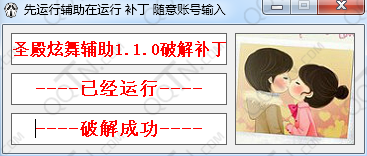 2、运行圣殿炫舞辅助破解补丁,显示破解成功,随便输入一个账号即可登录
