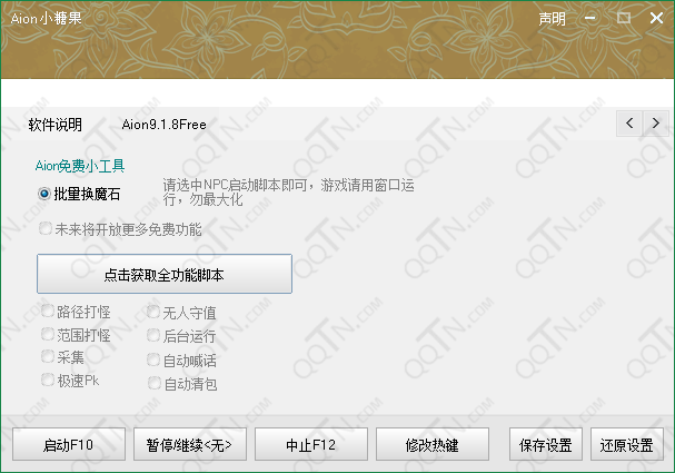 Aion永恒之塔辅助免费版仅仅只提供了批量魔石功能,虽然这款辅助软件能鸡肋,但总比没有的好,有需要的朋友可以下载使用。