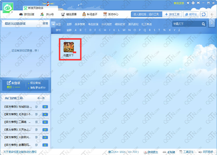 2、进入新浪页游助手,搜索称霸天下