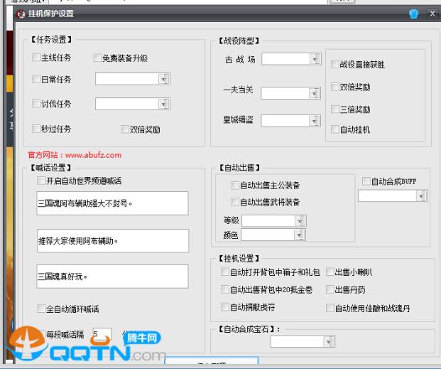 37三国魂阿布辅助工具是一款由阿布工作室专门针对《三国魂》制作的游戏辅助工具,这款阿布辅助支持全平台三国魂,它的功能非常多,包括无限领礼包、无限行动力、战神祝福免费领取、等级祝福免费领取、锁定体力、无限强征银两、秒杀神鬼吕布、建筑时间免费秒升、自动循环喊话等等,喜欢玩三国魂的朋友可以试试这款阿布辅助!