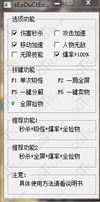 3.先选中伤害秒杀,无敌,爆率。进图按一次F2( 每次进图只需按一次)
