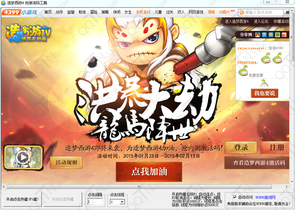 造梦西游4全新开启奇幻旅程,洪荒大劫,龙马降世,游戏内测掀起一股抢码热潮,建议玩家使用造梦西游4抢激活码工具,能够更快的抢到游戏激活码,比别人先一步玩到游戏。