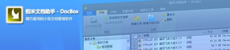 稻米文档-DocBox是一款精巧易用的小型文档管理软件,可以帮助用户收集整理电脑内的文档文件并进行搜索、移动、重命名、分类等操作,方便日后查看调用。