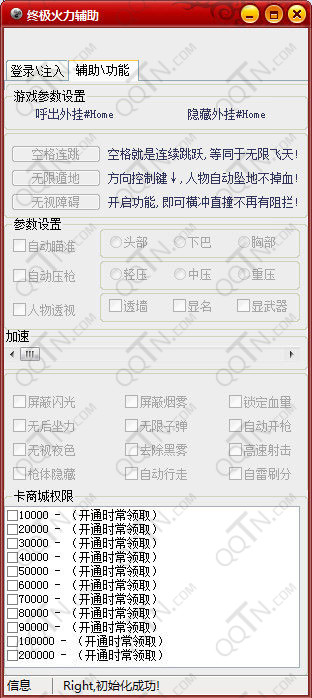 终极火力辅助拥有空格连跳、无限遁地、无限障碍让你躲避障碍顶呱呱,自动瞄准、压枪等功能让敌人个个爆头,还能卡商城免费领取物品哦!