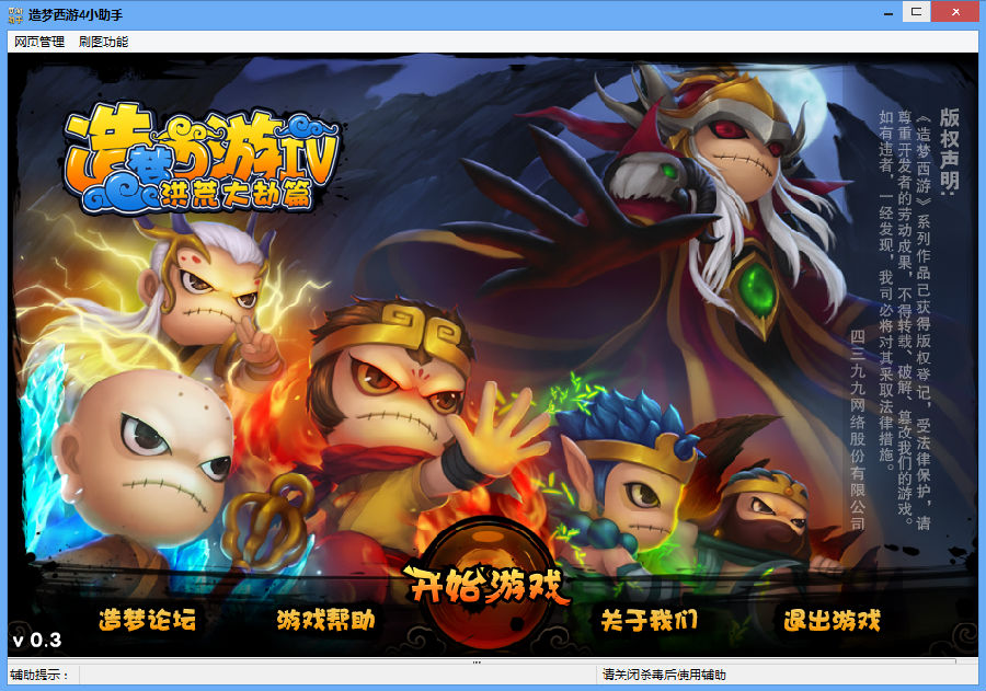 造梦西游4小助手主要拥有网页管理和游戏刷图两大功能。本造梦西游4小助手为破解版,功能无限制完全供玩家免费使用。