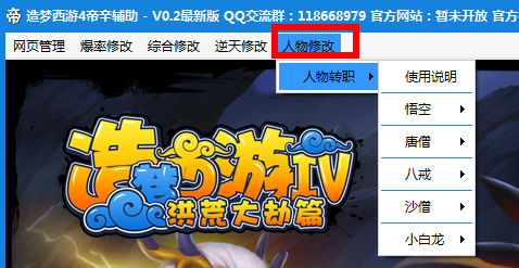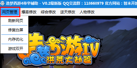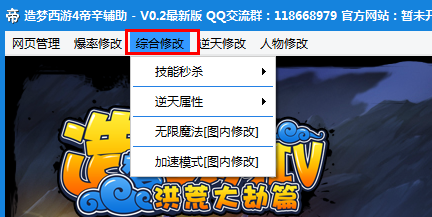造梦西游4帝辛辅助主要将功能分为网页管理、爆率修改、综合修改、逆天修改、人物修改五大类别,辅助玩家更加轻松的玩转游戏。