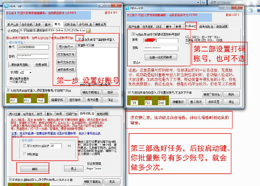 批量换号领礼包,自动创建教练,自动领礼包,自动打验证码,需自己设置打码账号,新版批量登入领礼包使用前台操作,更稳定。