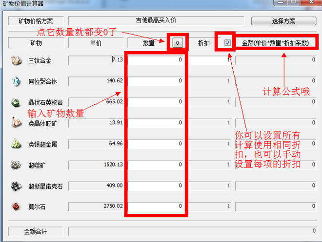 包括各类矿石价值计算、采矿收益分析、生产计算等功能