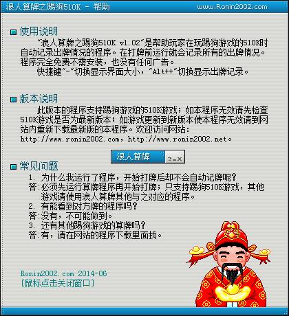 浪人算牌之踢狗510K是由浪人算牌器官方推出的专门针对踢狗510K的游戏算牌器,这款软件拥有记牌、算牌功能,浪人算牌程序内没有广告,无需安装,解压缩即可使用;安全软件的防火墙设置要允许,否则无法登录。欢迎免费下载使用!