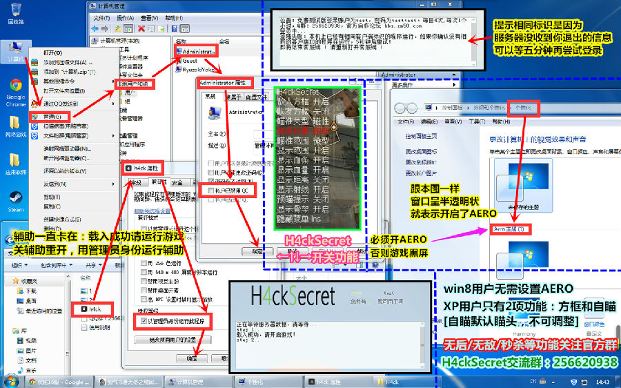 1.解压辅助到桌面,并且关闭杀毒软件,然后右键管理员权限运行辅助(H4ck.exe).
