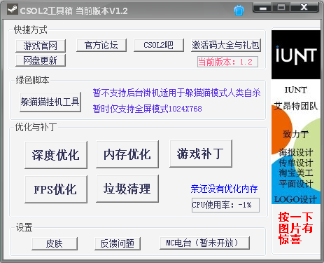 想获取反恐精英online2激活码与礼包就使用CSOL2工具箱,此外CSOL2绿色工具箱还提供游戏优化、补丁下载、垃圾清理以及万人瞩目的躲猫猫功能。