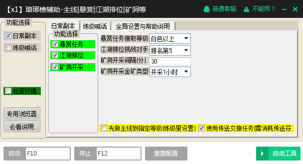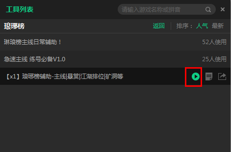4.在琳琅榜辅助工具中“启动”“【x1】琅琊榜辅助-主线|悬赏|江湖排位|矿洞等”