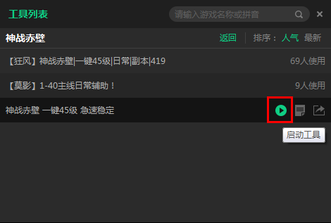 4.在神战赤壁辅助工具中“启动”“神战赤壁 一键45级 急速稳定”