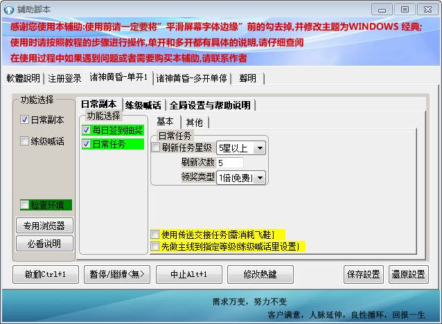 1、脚本的任何功能修改,都要点保存设置后,再启动才生效